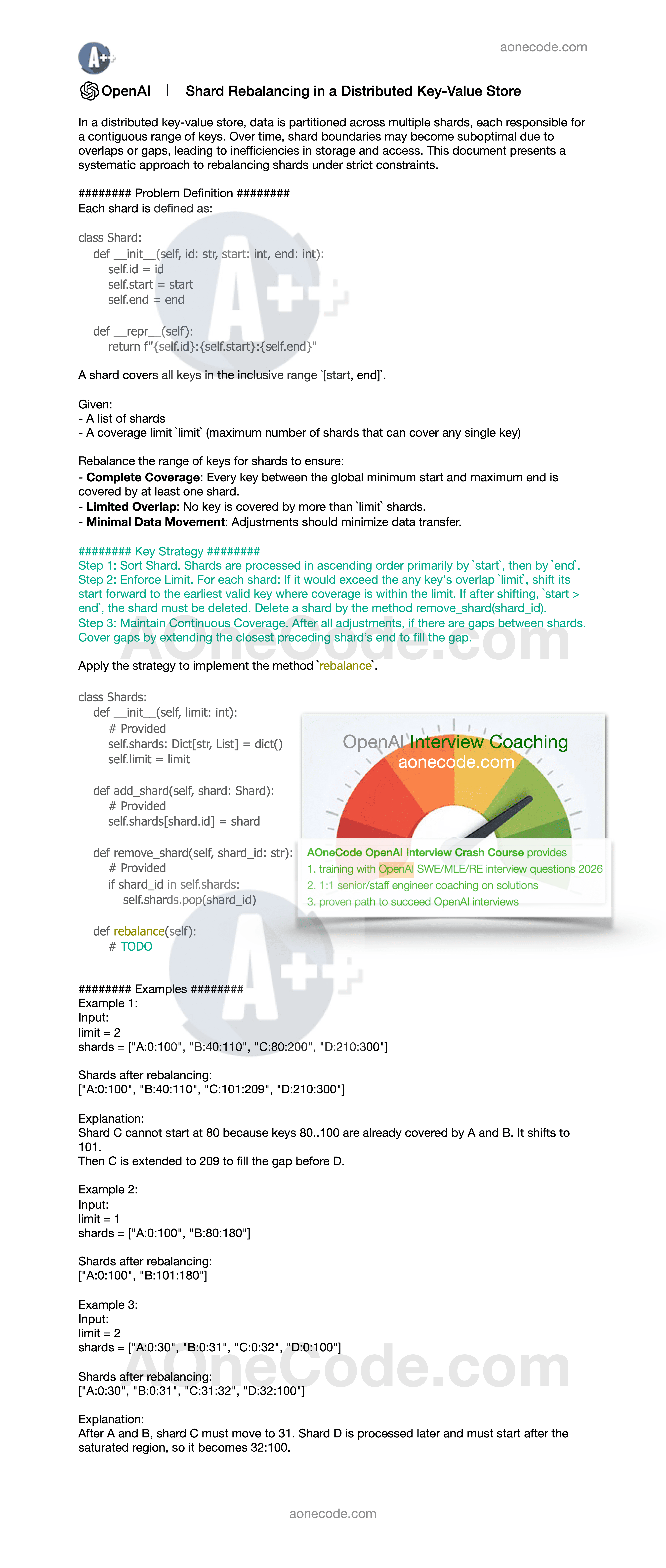 due to overlaps or gaps, leading to inefficiencies in storage and access. This document presents a systematic approach to rebalancing shards under strict constraints.