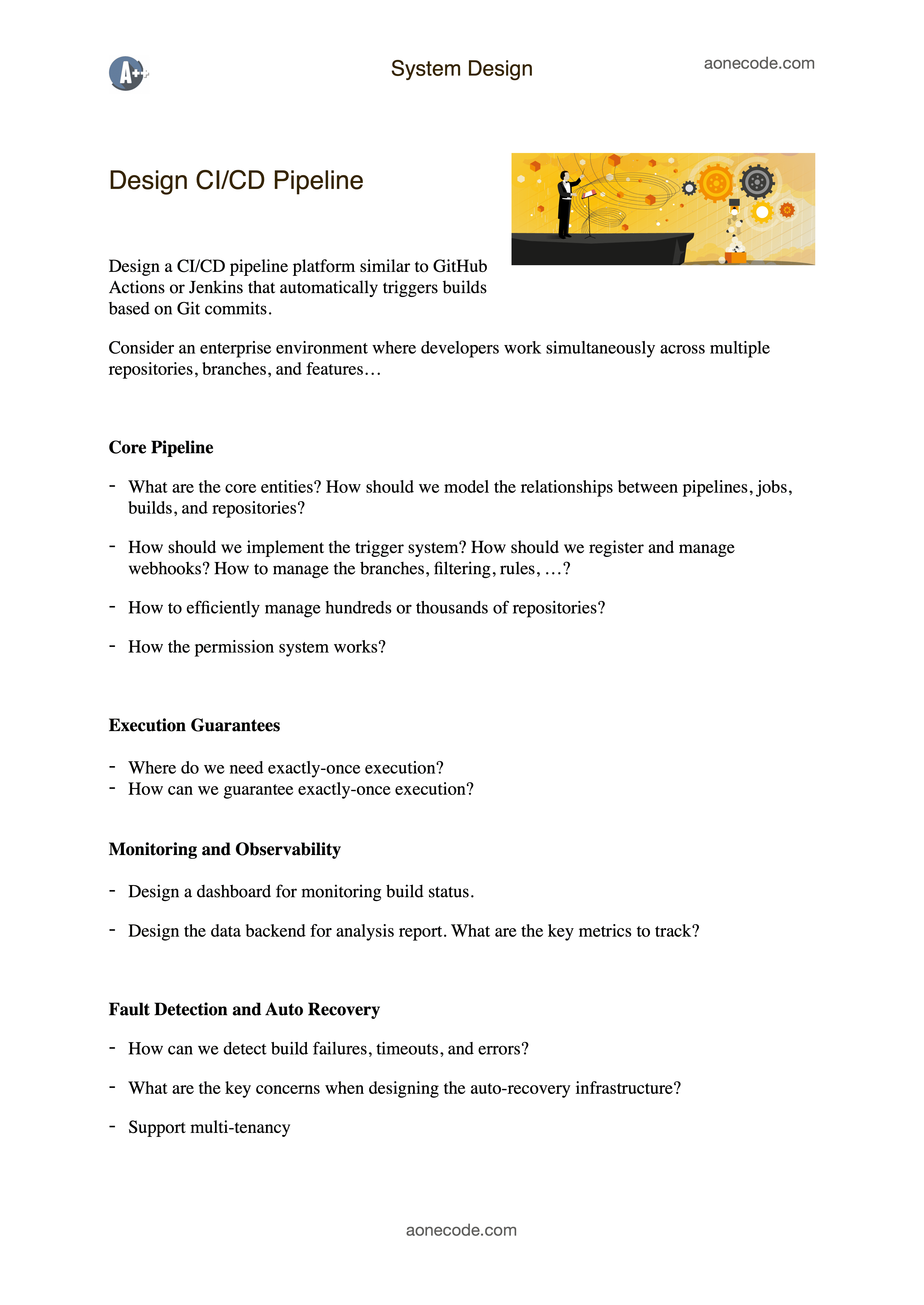 Design a CI/CD pipeline platform similar to GitHub Actions or Jenkins that automatically triggers builds based on Git commits...