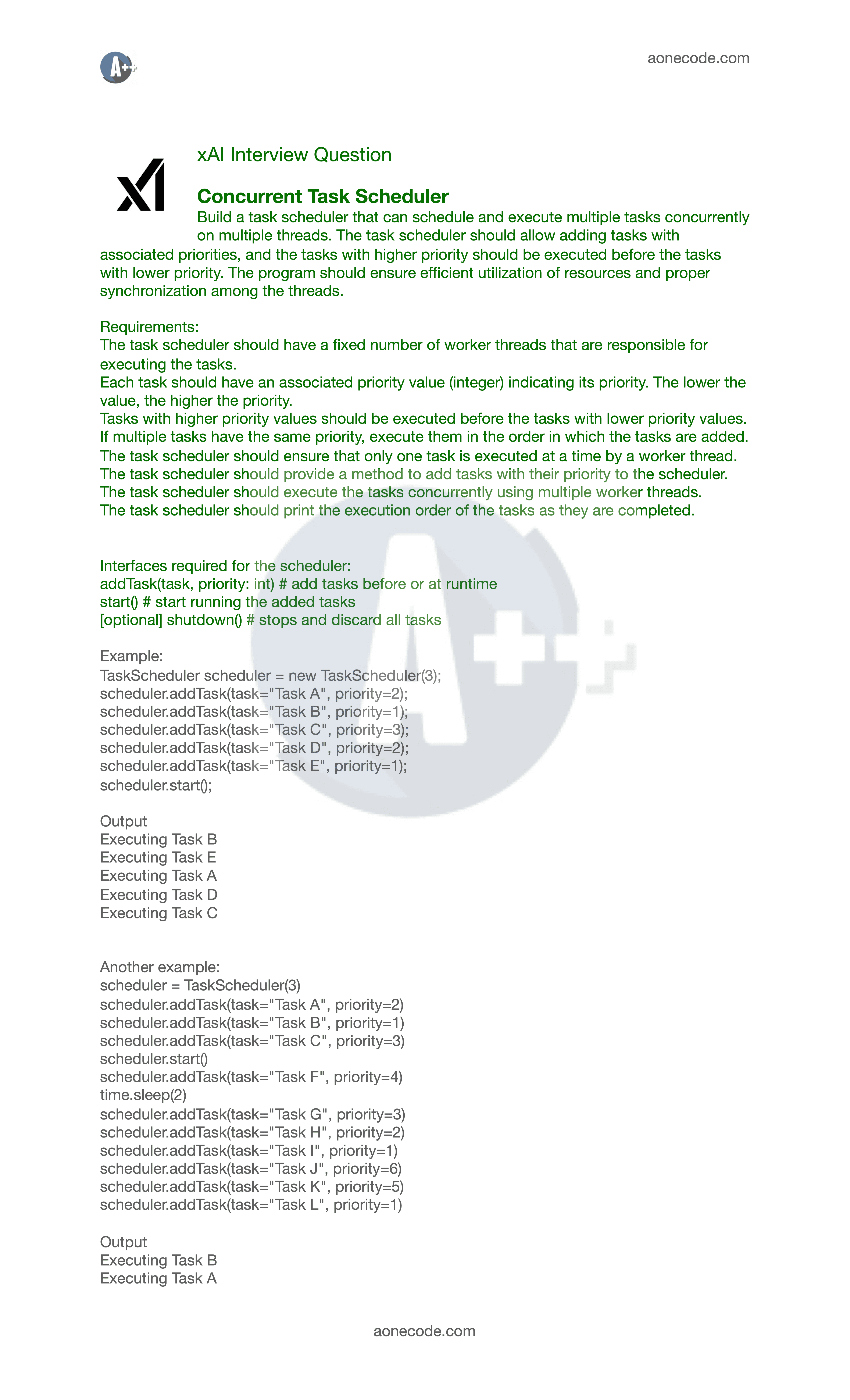 Most recent interview questions and system design topics gathered from aonecode alumnus.